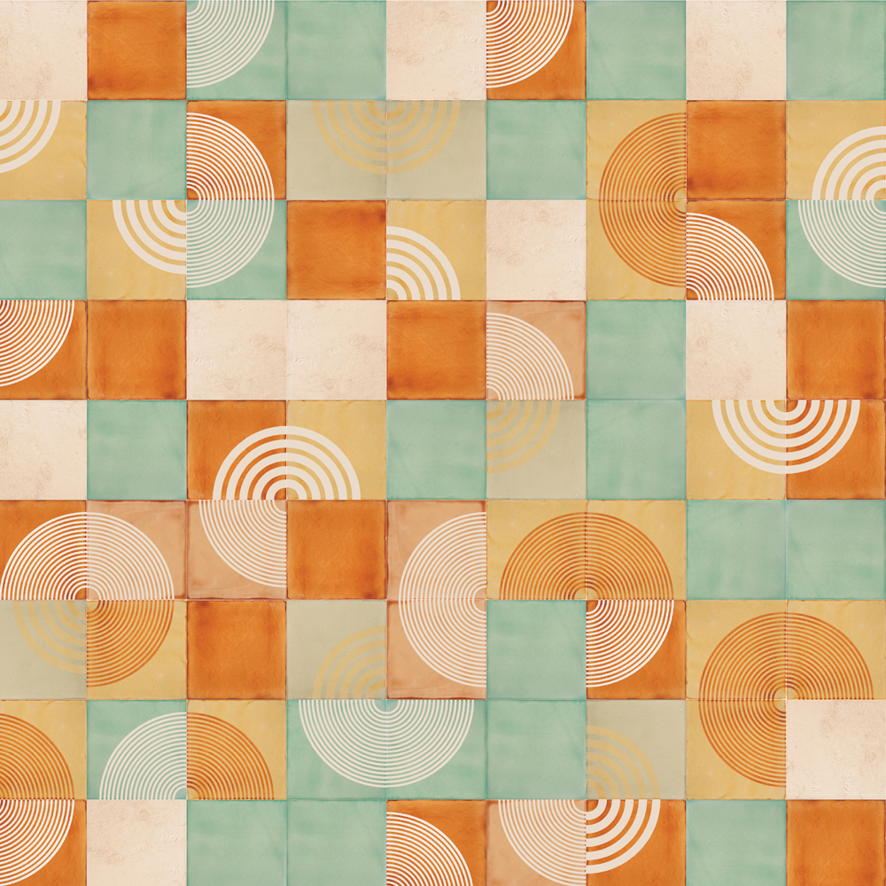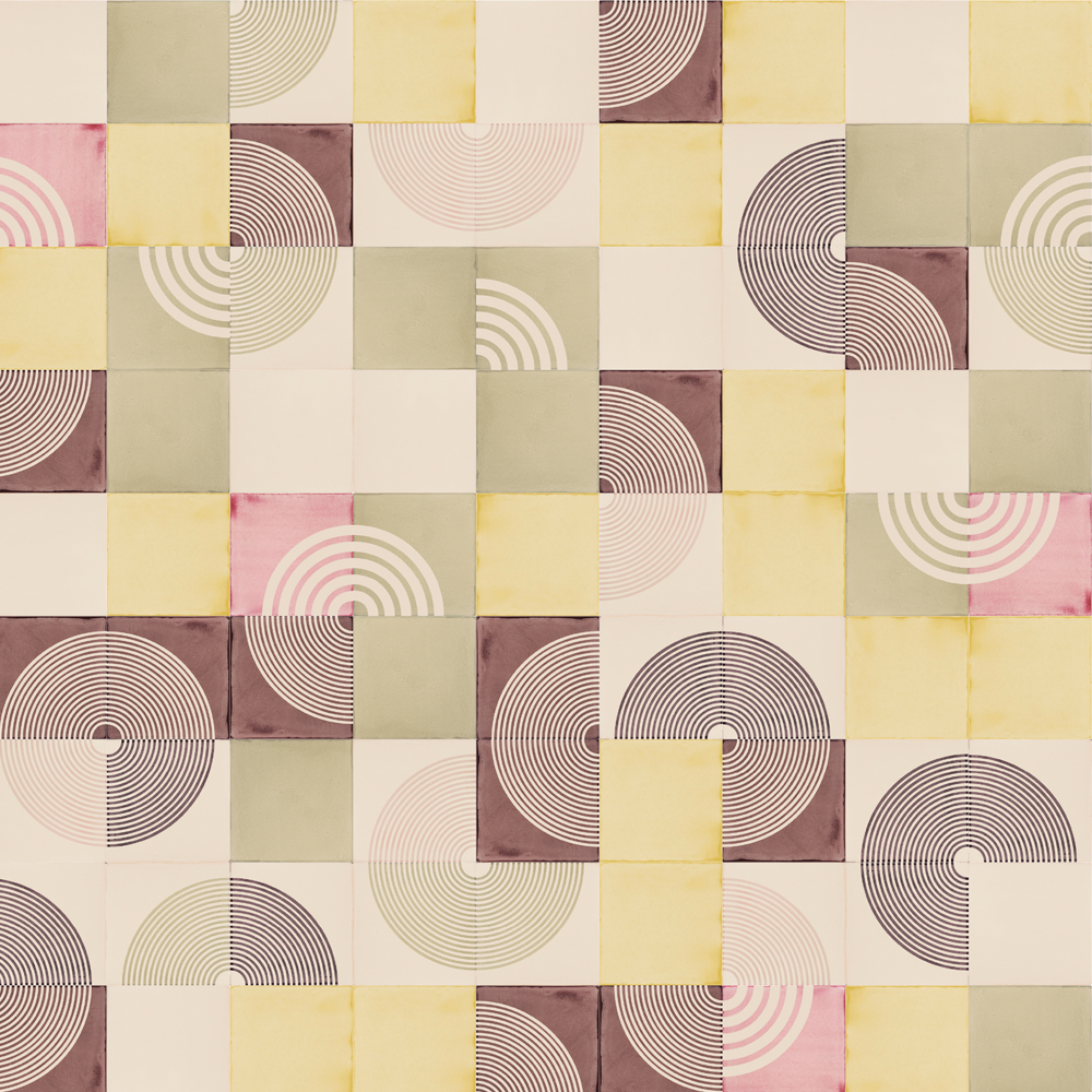 Do you remember drawing circles in the sand as a child? With the tines of a plastic rake you could write your name, draw undulating sets of parallel lines or make elegant, looping patterns that curled and crested and doubled back on themselves, at least until the sea washed them away. Who’s to say it wasn’t art in an early and very pure form? We’ve tried to recapture those swooping, circling lines and the sense of innocent play in this screen-printed ceramic tile design.