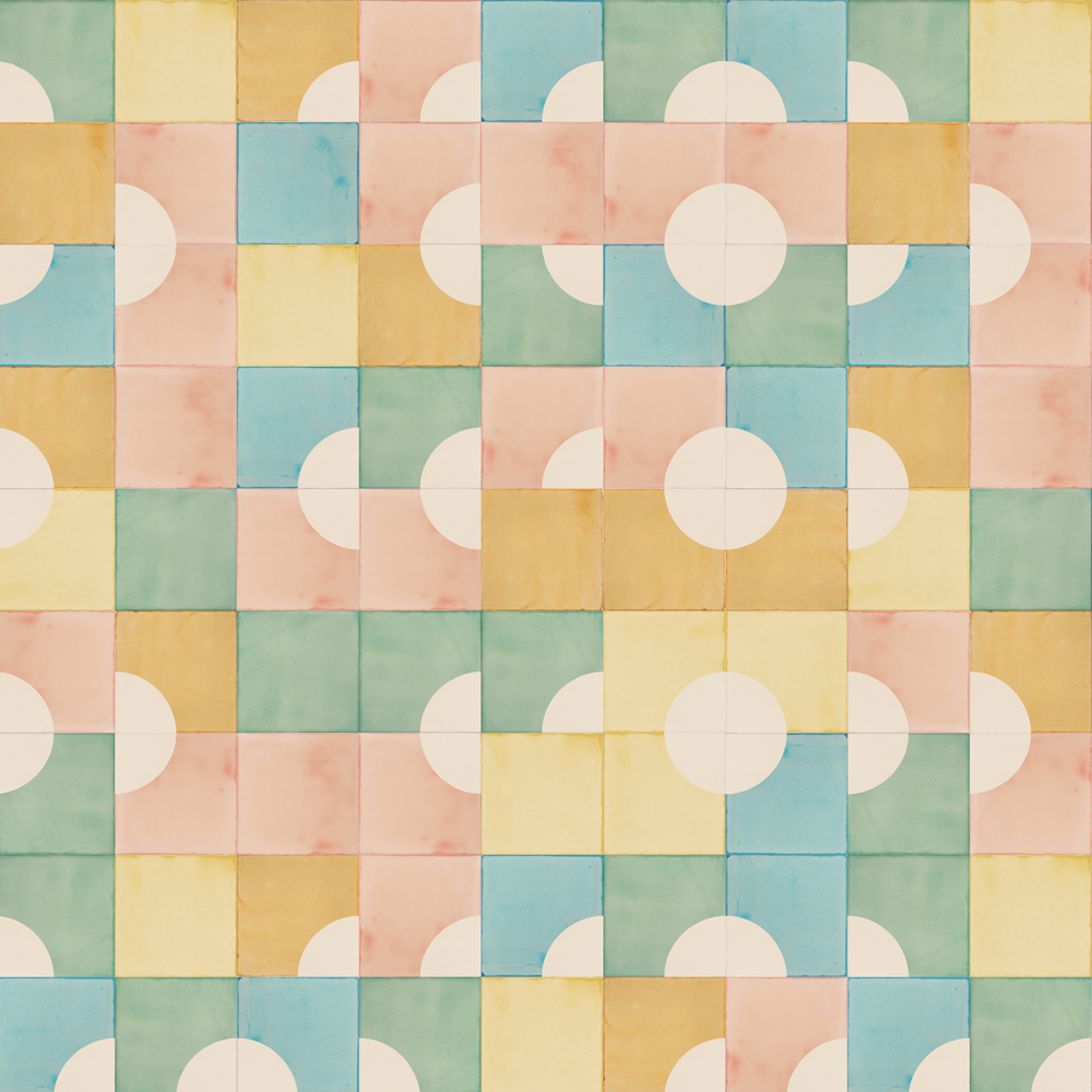In the 1960s, musicians began to experiment with the ‘wall of sound’, a way of producing music so that instruments merged to create dense and strong music. Sixty years later, enter our ceramic rendition of this music style: handmade and screen-printed QC1 and AL1 tiles create an intense visual impression where the strong colours combine rather than compete. As we’ve often said, it’s all about working together beautifully.