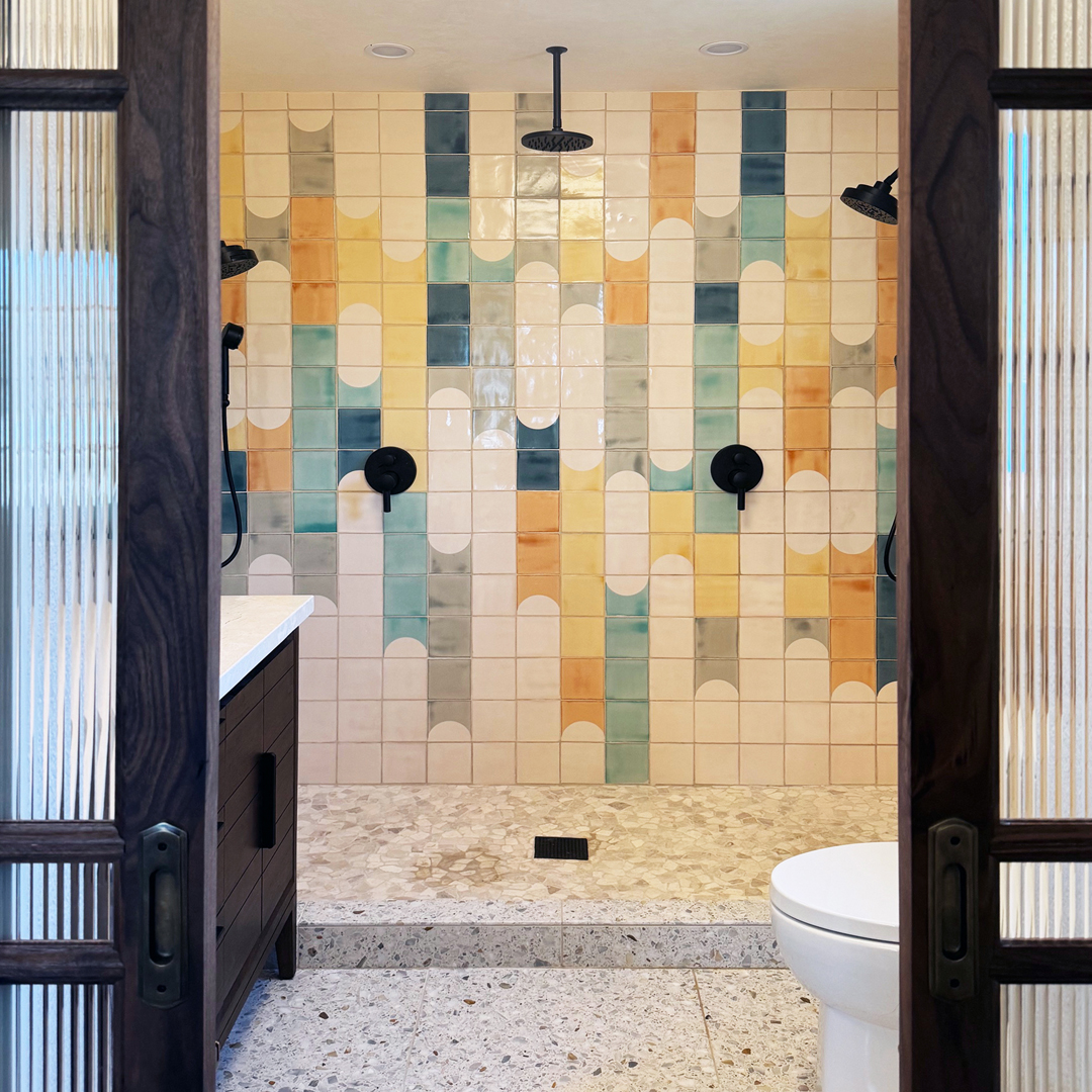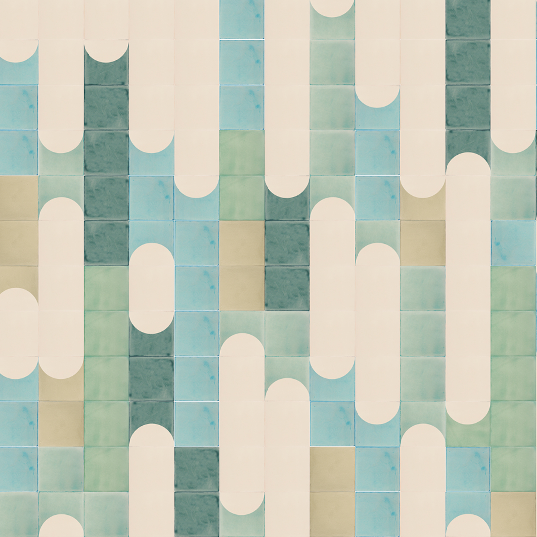 Waterfalls are one of nature’s more magnificent spectacles but they can also be a bridge between two countries: Argentina and Brazil share Iguaza Falls, Vietnam and China share Detian Falls and Canada and the US share Niagara Falls. Tile designs can similarly span cultures. Not so long ago a client asked for a design that married US mid-century modern with a Mexican design aesthetic. We loved the mix, particularly when made with Portuguese tiles designed in the Netherlands, and this Waterfalls design grew from that. Endless colourways are possible so here are a few to inspire your imagination.