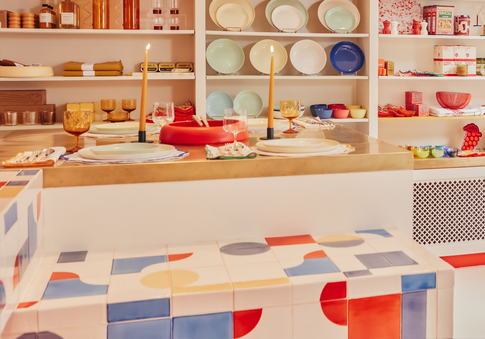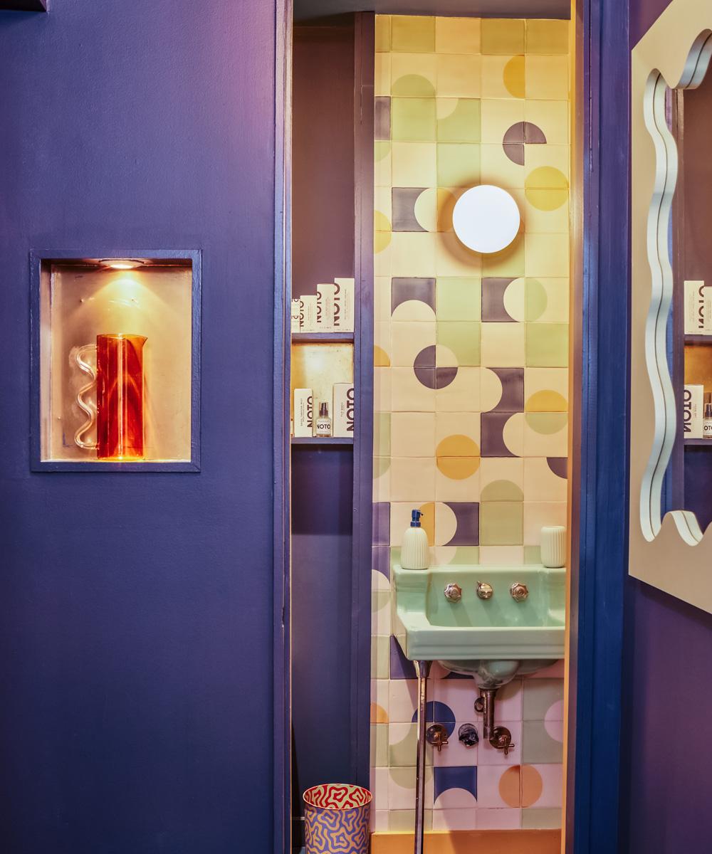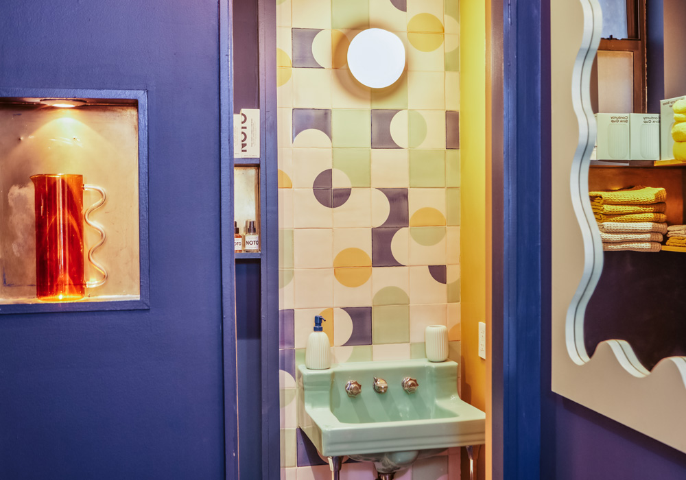 Big Night in New York’s West Village is filled with everything you need for a special night. From food to glassware, candles to earrings, this shop is where you’ll also find Smink Studio tiles decorating the countertop, backsplash and bathroom. In the shop area it’s a joyful mix of primary colours, curvaceous shapes and tiles that wrap around the edges and corners of the counter; in the restroom it’s purple, green and yellow tiles on the feature wall. All masterminded for maximum impact by design studio Decorum.